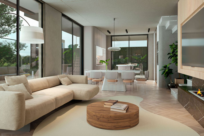 O Residencial LAZULI é um sobrado de alto padrão que une design contemporâneo e funcionalidade. Com três amplas suítes, uma cozinha moderna com bancadas em mármore e uma área social que conecta suavemente a sala de jantar, estar e lounge externo, este projeto é a perfeita definição de conforto e elegância. A fachada em concreto aparente e os amplos painéis de vidro trazem uma sensação de leveza e integração com o ambiente externo, enquanto o fire place ao ar livre é o lugar ideal para momentos relaxantes. Cada detalhe foi pensado para criar um espaço que seja, ao mesmo tempo, sofisticado e acolhedor.
